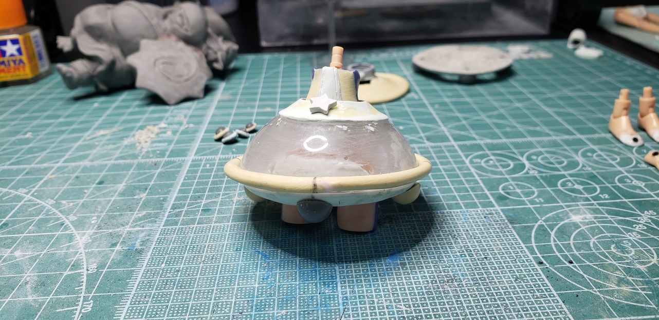 星の飾り取り付けたり各パーツの合わせ目消しや表面処理に入っています。