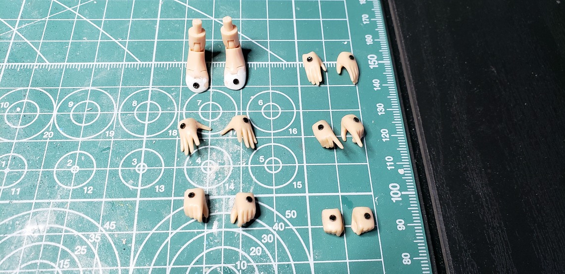 あと手足に穴を開けて極小のねじを付けました。